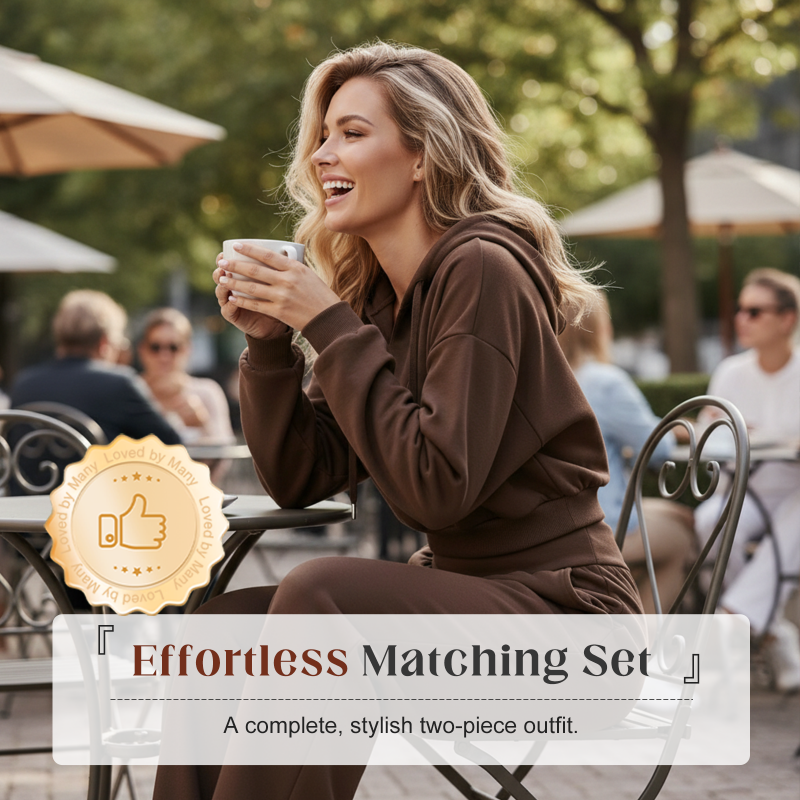 TRENDY CROPPED HOODIE - Features a modern cropped length and a unique V-neckline that adds a touch of contemporary style. It perfectly complements the high-waist pants, creating a balanced and fashionable silhouette.