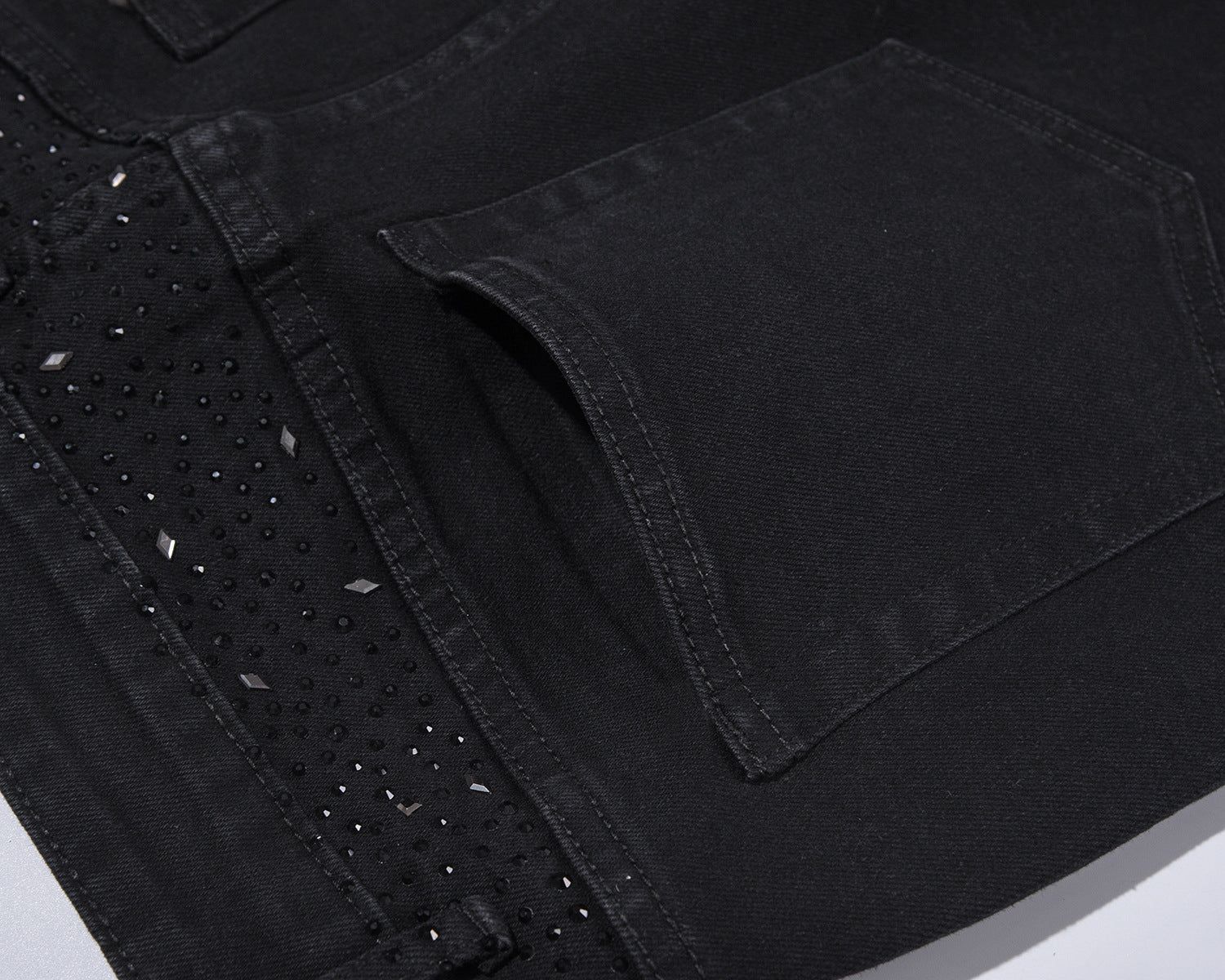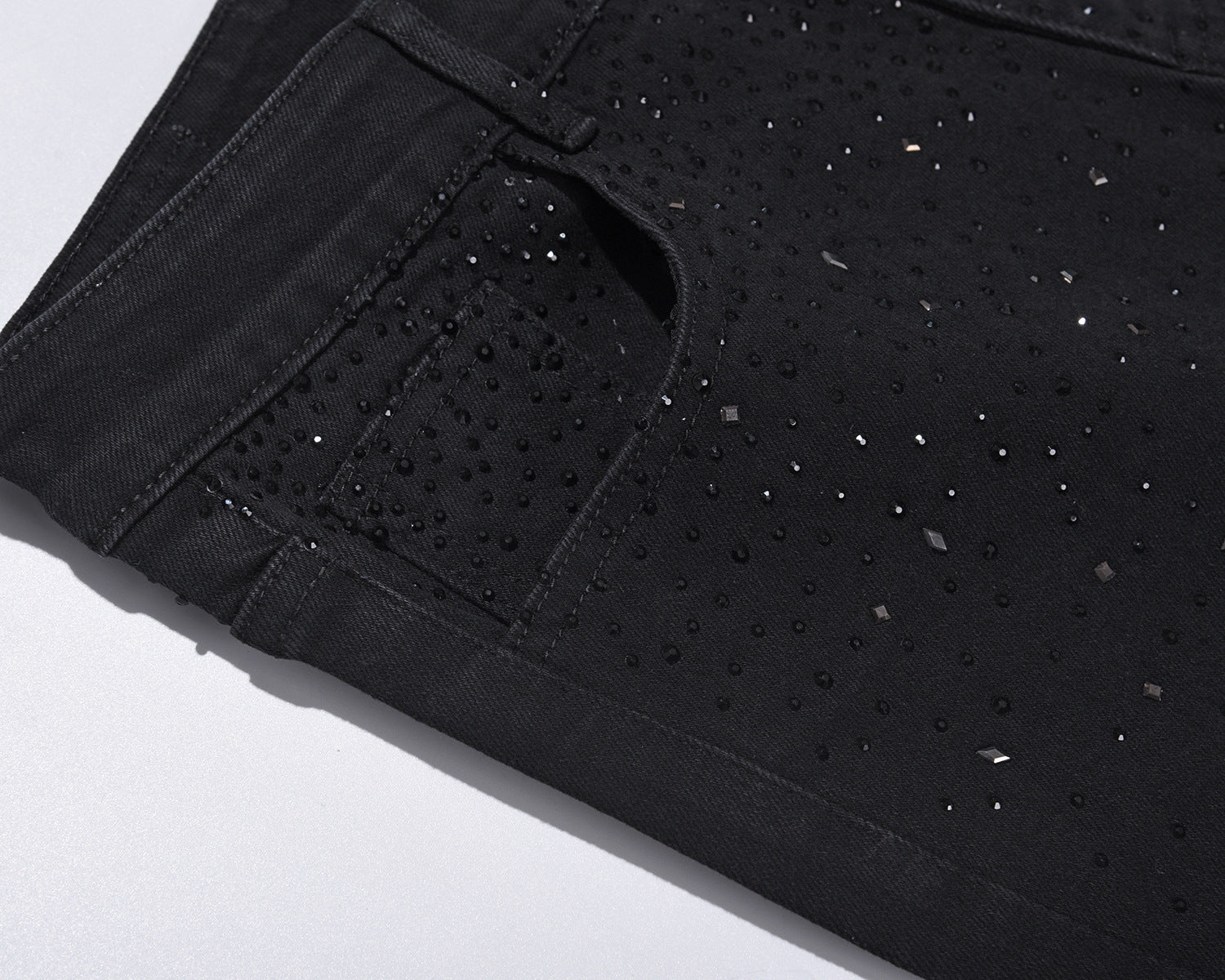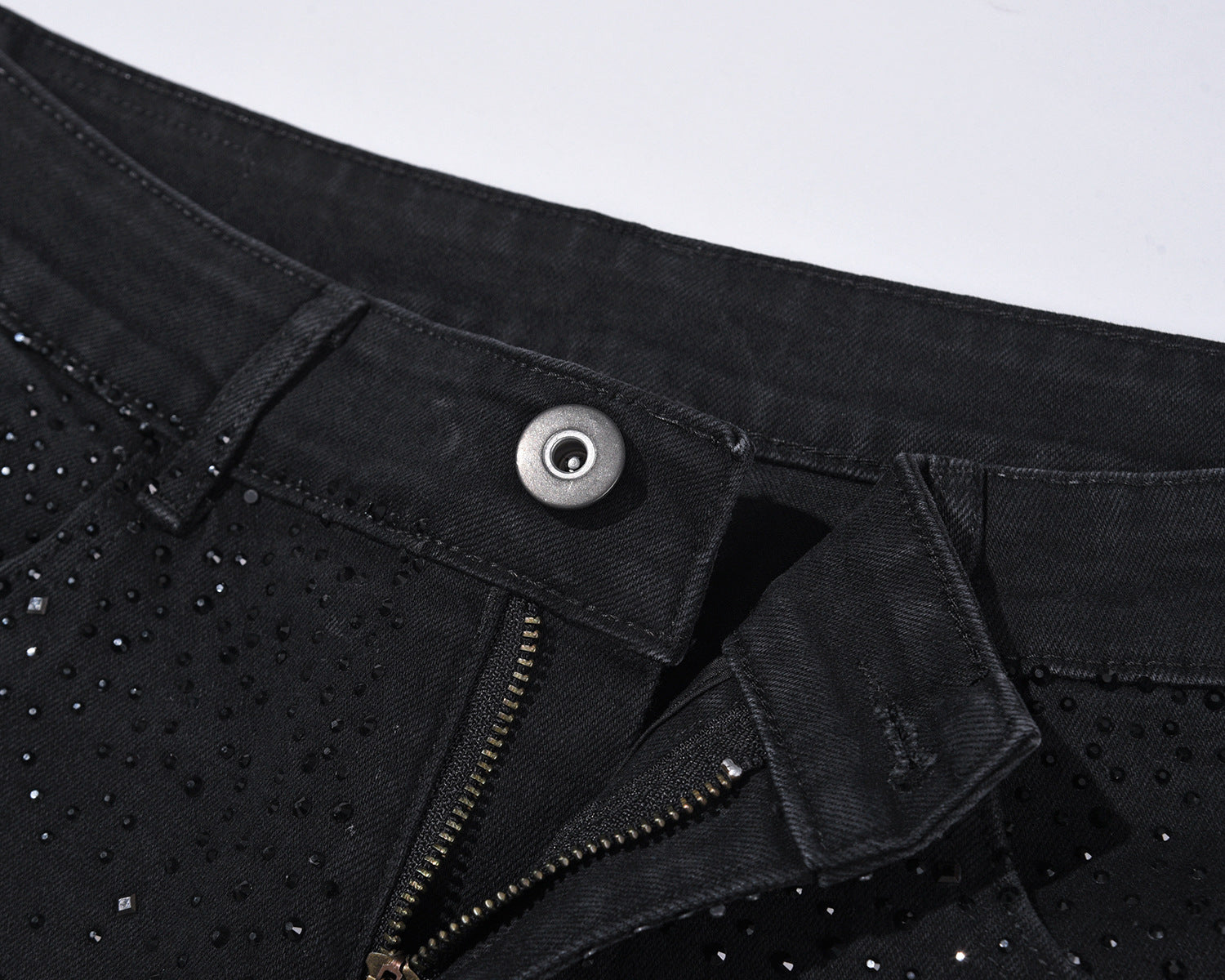 💥Christmas Sale 40% OFF👖 Rhinestone Embellished Slim-Fit Black Denim Jeans - Stretch Comfort with Sparkling Waistband for a Dazzling Look 💎🖤