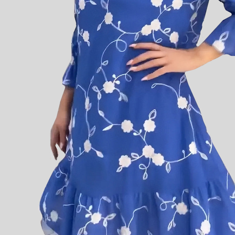 RUFFLED HEM: The delicate ruffled hem adds a feminine and playful flair to the dress, creating movement and charm with every step.