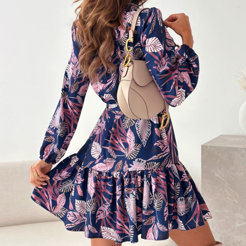 💖Hot Sale 50% OFF🌸Floral Pattern Waist-Cinching Ruffled Shirt Dress