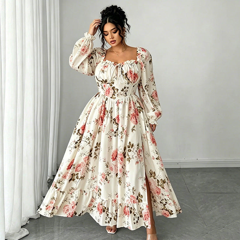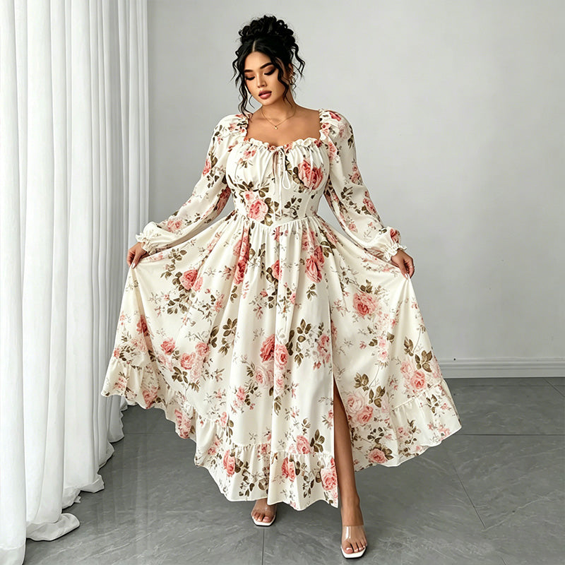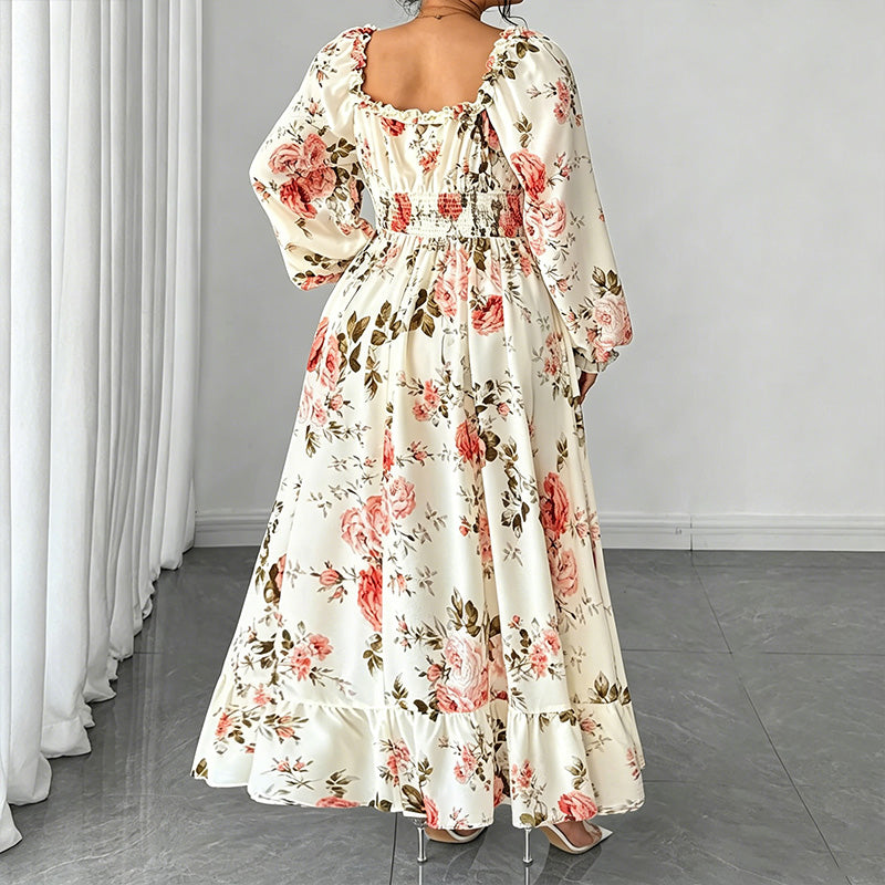 šFloral Print Square Neck Long Sleeve Maxi Dress