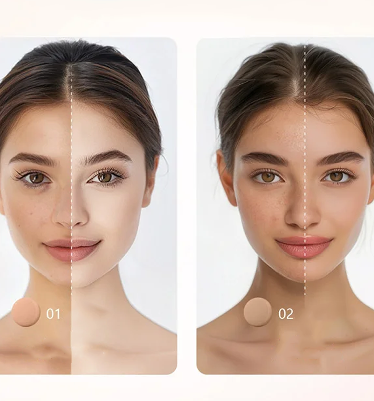 TWO-LAYER DESIGN ā 2 IN 1 APPLICATIONĀ āĀ The compact features a smart dual-layer design with pressed powder on the top layer and cushion makeup on the bottom. This layout ensures the powder stays dry and fresh while the cushion foundation remains moist and ready for application. It allows users to set and refresh their makeup anytime with one convenient product.