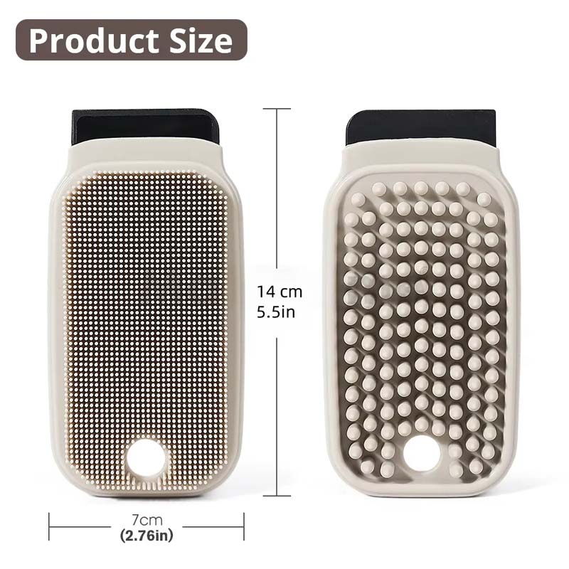 DUAL-SIDED VERSATILITY: One side features dense bristles for scrubbing fruits, veggies, and dishes. The other side has a built-in scraper for tackling stubborn food residue, making it an all-in-one kitchen cleaning tool.