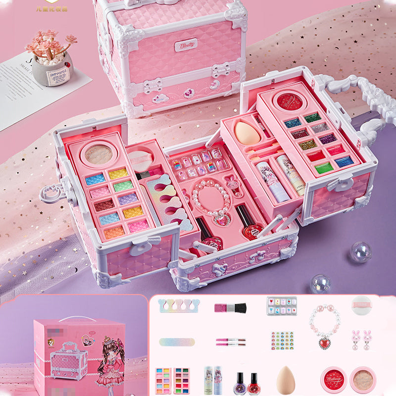 ALL-IN-ONE PRINCESS KIT: This treasure chest includes everything a little princess needs, from vibrant eyeshadows and blushes to lipsticks and nail polishes. It's a complete set for endless makeup exploration and magical transformations.