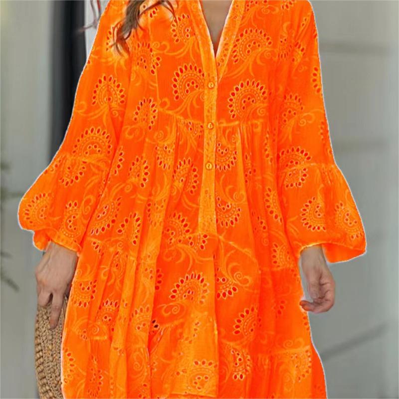 Package Included:1*Solid Color V-Neck Loose Hollow Out Dress