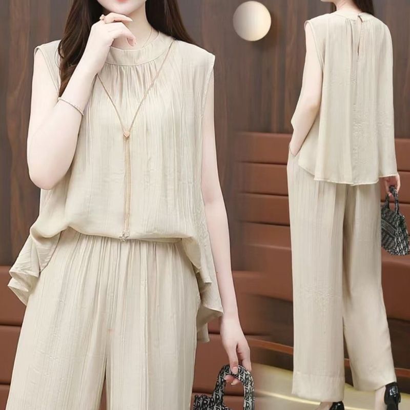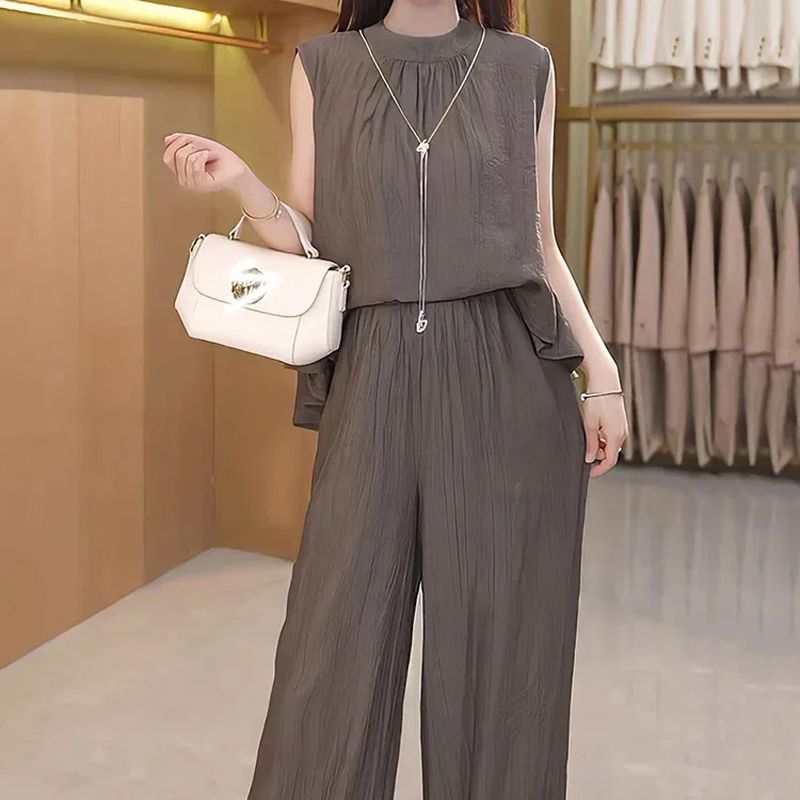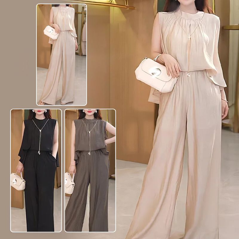ELEVATE YOUR CASUAL WARDROBE: This stunning ensemble features a sleeveless top and wide-leg pants, crafted from a lightweight, breathable fabric that effortlessly flows and drapes for a flattering, elegant look, making you look slimmer and taller.