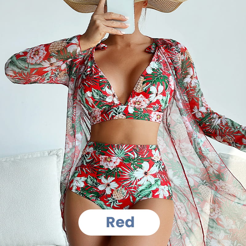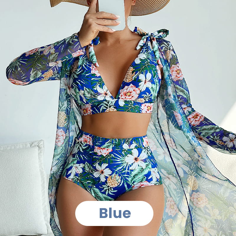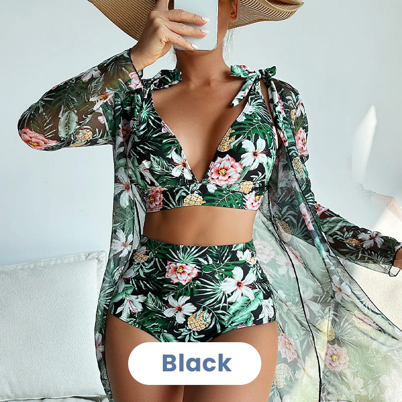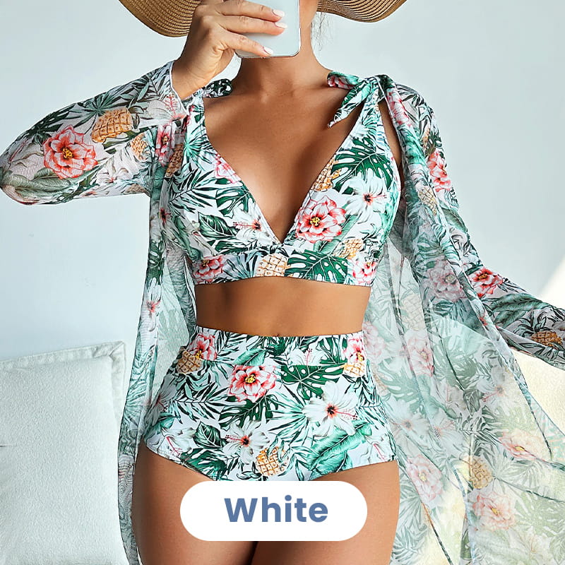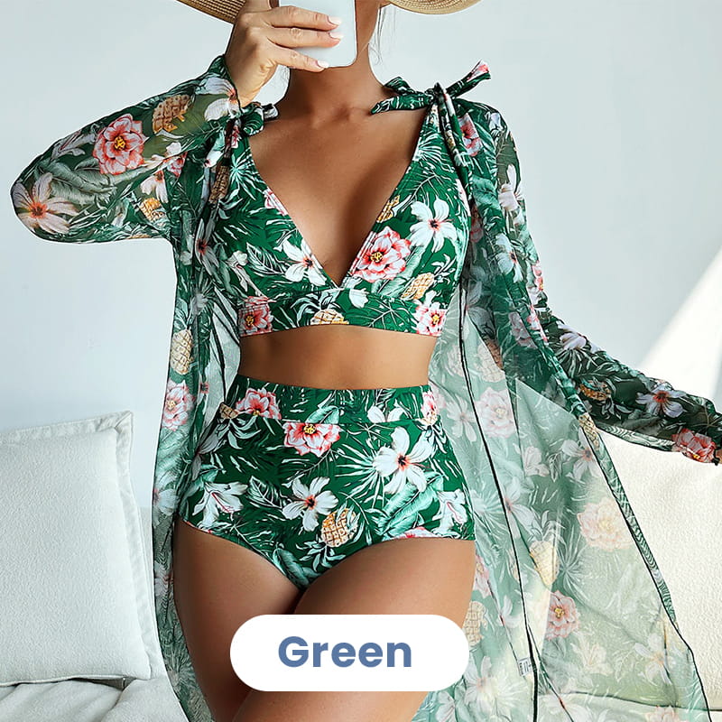 COMPLETE BEACHWEAR SET - Made of polyester, this three-piece swimsuit set is lightweight, breathable, soft, and wrinkle-resistant, ensuring your comfort.