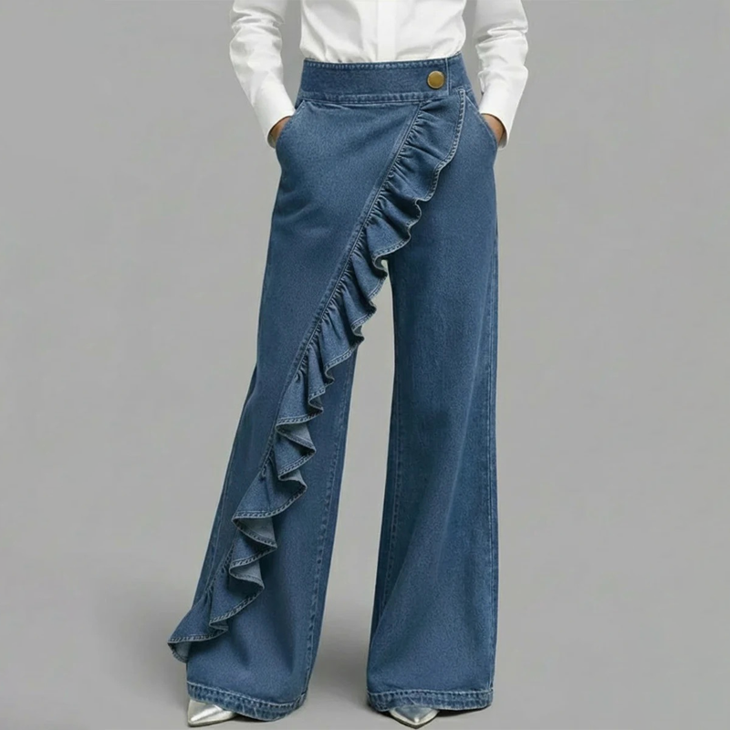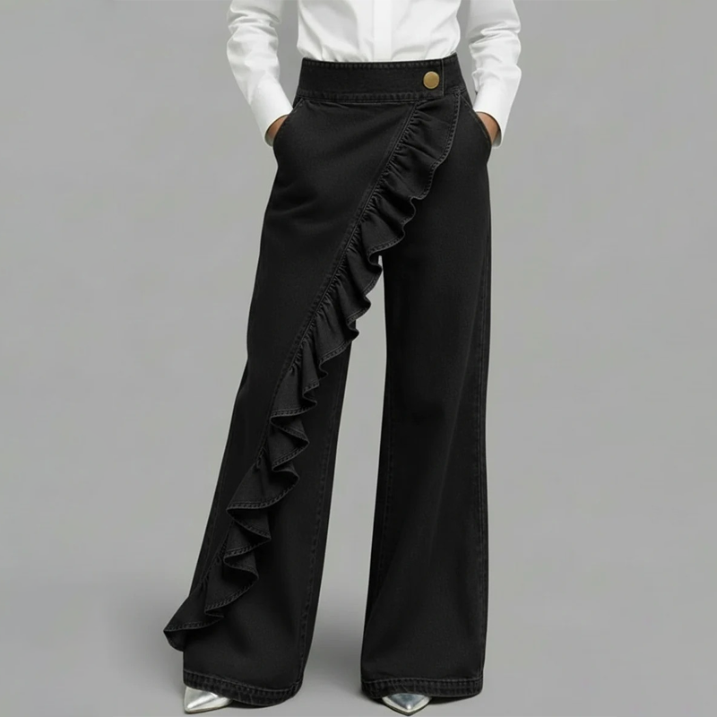 👖✨Women’s Asymmetrical Ruffle Wide-Leg Denim Pants